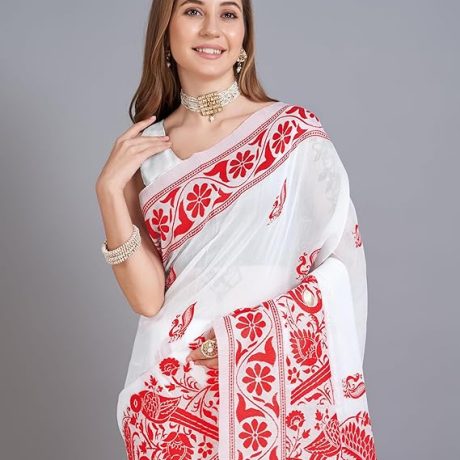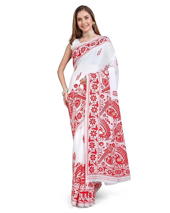 Handloom Weaving: Each saree is carefully handwoven using traditional techniques, showcasing the artistry and skill of expert craftsmen.