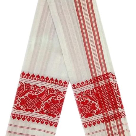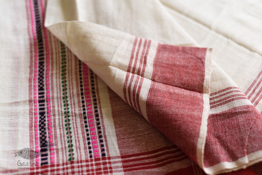 CHATTRI WALA Assam Handloom- Polycotton Assamese Traditional Gamusa with Red