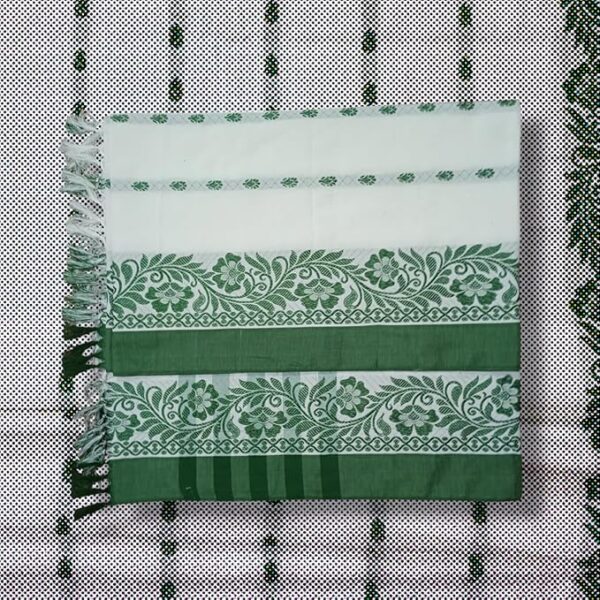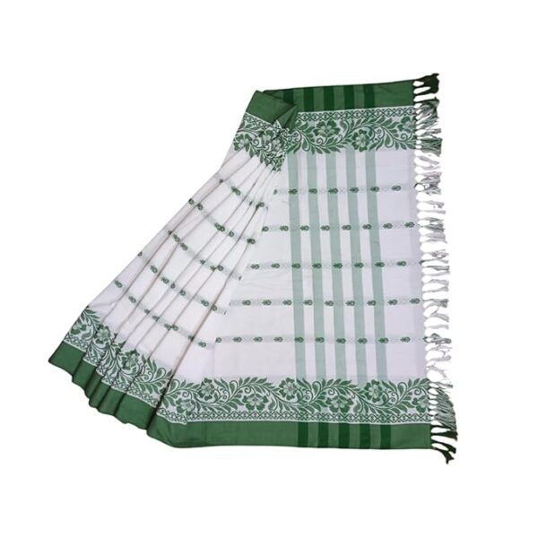 Be the first to review “Traditional Cotton Adivasi Saree, White with Green Border, 5.5 Metres.”